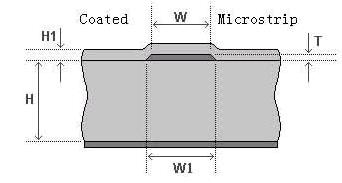 其中TOP層有單線阻抗要求,參考層為2層,其中單線阻抗線寬W1要求12.0MIL,阻抗要求50±5%Ω(50±2.5Ω),其結(jié)構(gòu)如下: