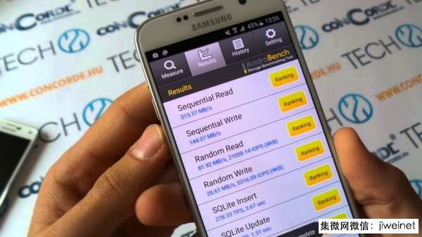 在此前的測試中我們已經見識過 UFS 2.0 存儲技術的厲害,使用了 UFS 2.0 存儲技術的三星 Galaxy S6 以及 Galaxy S6 Edge 的存儲性能在各項測試中都完勝其他測試對手。UFS 存儲技術堪稱是當今高端移動設備佳的內存存儲解決方案,UFS內存采用“命令隊列(Command Queue)”技術,該技術常用于固態硬盤(SSD)中,通過串行接口加快命令執行速度,與采用 8 位并行接口的eMMC標準相比,數據處理速度得到大幅提高。因此,三星此次推出存儲讀取速度達到 19000 IOPS,是高端智能手機中常用的 eMMC 5.0 嵌入式內存(7000 IOPS)的 2.7 倍,普通高速內存卡(1500 IOPS)的 12 倍,其超快的處理速度將大大提升系統性能。此外,新產品的連續讀寫性能也提升到了 SSD 水平,而功耗則降低了 50%。