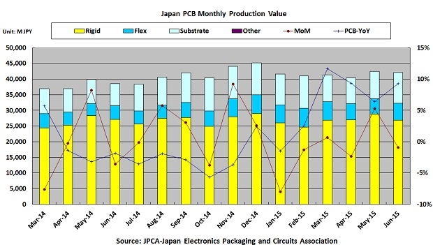 日本2015年6月PCB總產值: 44,152 百萬日元服務