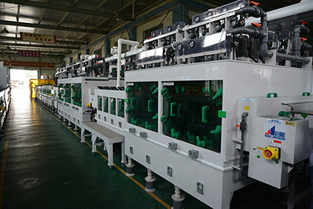 在閆董的帶領(lǐng)陪同下,GPCA/SPCA一行參觀了巨龍自主研發(fā)制造的RTR/DES生產(chǎn)線。據(jù)介紹,RTR/DES生產(chǎn)線的大特點在于卷對卷、水平雙工位作業(yè),該DES線的過板能力薄0.036mm,板寬度為250mm,同時能生產(chǎn)兩種不同規(guī)格的產(chǎn)品,大大提升了生產(chǎn)效率;同時,此DES線還配置了真空蝕刻工藝,有效防止“水池效應(yīng)”、提高蝕刻均勻性,目前在片對片實驗中極差值已達(dá)到了94%以上,量產(chǎn)可達(dá)到40um/40um。該DES線不僅節(jié)省了勞動成本、提高了整體的生產(chǎn)效率,還有效保證軟板的品質(zhì),使軟板生產(chǎn)技術(shù)更上一個臺階。