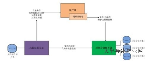 元數(shù)據(jù)服務(wù)器、對(duì)象存儲(chǔ)服務(wù)器和客戶(hù)端可以分別運(yùn)行于獨(dú)立的操作系統(tǒng)中,也可以運(yùn)行于一個(gè)操作系統(tǒng)內(nèi)部。優(yōu)的解決方案是元數(shù)據(jù)服務(wù)器位于一個(gè)單獨(dú)的服務(wù)器中,對(duì)一個(gè)元數(shù)據(jù)存儲(chǔ)對(duì)象提供服務(wù),單獨(dú)的對(duì)象存儲(chǔ)服務(wù)器為多個(gè)對(duì)象存儲(chǔ)對(duì)象提供服務(wù),客戶(hù)端也位于單獨(dú)的服務(wù)器。其結(jié)構(gòu)如下圖所示,圖中為一個(gè)元數(shù)據(jù)服務(wù)器,一個(gè)對(duì)象存儲(chǔ)服務(wù)器,和一個(gè)客戶(hù)端的示意圖,元數(shù)據(jù)服務(wù)器服務(wù)于一個(gè)元數(shù)據(jù)存儲(chǔ)對(duì)象,對(duì)象存儲(chǔ)服務(wù)器服務(wù)于三個(gè)目標(biāo)存儲(chǔ)對(duì)象。