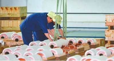 一卷卷的銅箔材料被送上分切機,片刻后,分切機的另一頭便“吐”出了適合客戶要求的合格產品,這是銅箔出廠的后一道工序。
