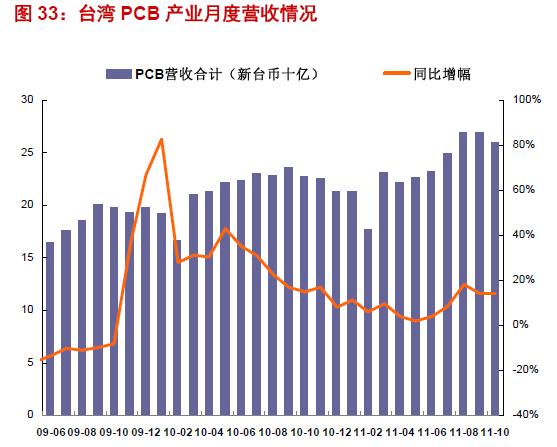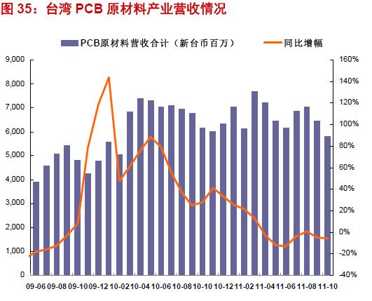 PCB 上游關(guān)鍵原材料玻紗布、鍍銅板價(jià)格降低。受此影響,臺灣PCB 原材料產(chǎn)業(yè)10 月份營收合計(jì)58.15 億新臺幣,環(huán)比下跌9.82%,同比下滑5.50%。軟板產(chǎn)業(yè)表現(xiàn)較好,10 月份實(shí)現(xiàn)營收29.45億新臺幣,同比增長31.55%,環(huán)比增長2.22%。行業(yè)普遍不景氣的情況下,依舊保持著整體穩(wěn)步向上的態(tài)勢。